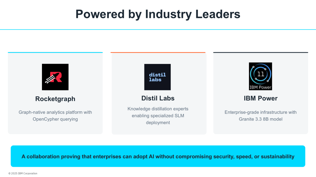 7. The partnership model works: Bringing together graph analytics (Rocketgraph), model distillation expertise (Distil Labs), and enterprise infrastructure (IBM) creates solutions no single vendor could deliver